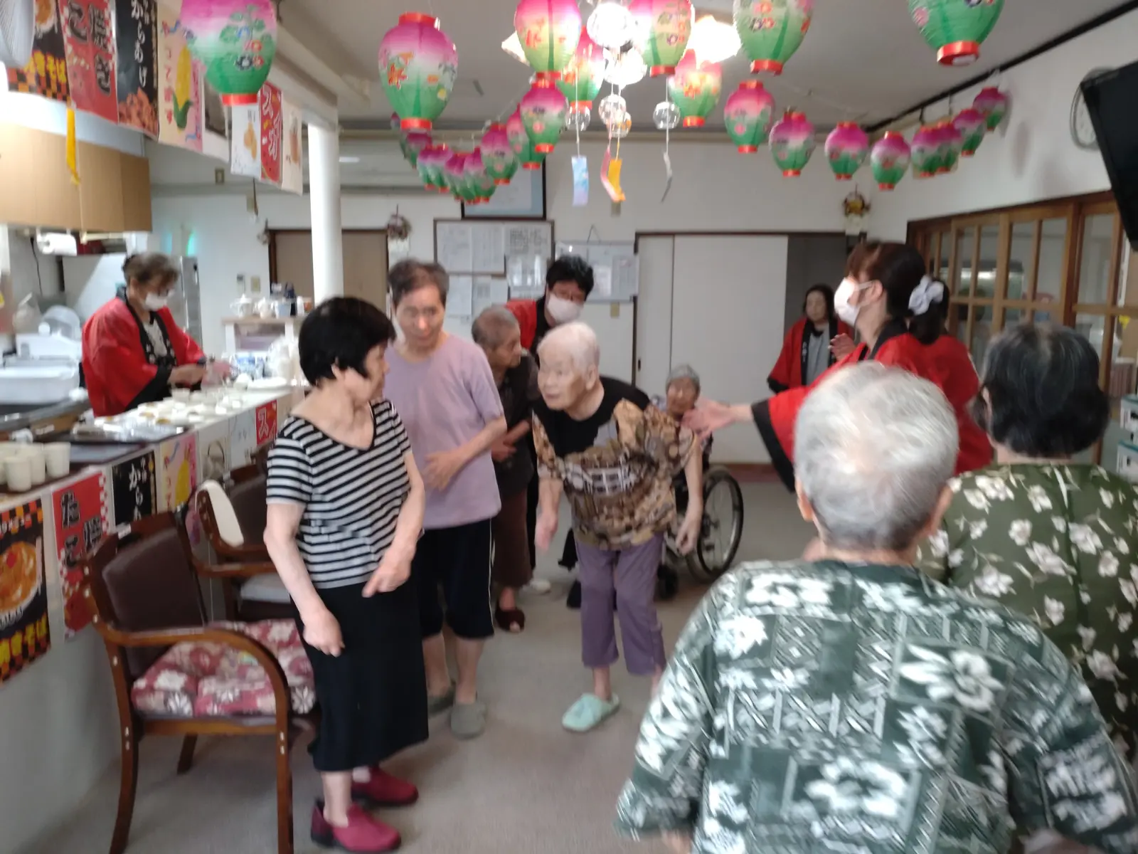 七夕等の季節行事や体操などの日々のレクリエーション。毎日が彩り豊かになるよう、スタッフ一同工夫を凝らしています。気候の良い時期には、近隣の公園への散歩やドライブ、外食ツアーなど、外出行事も積極的に行い、心身のリフレッシュを図っています。