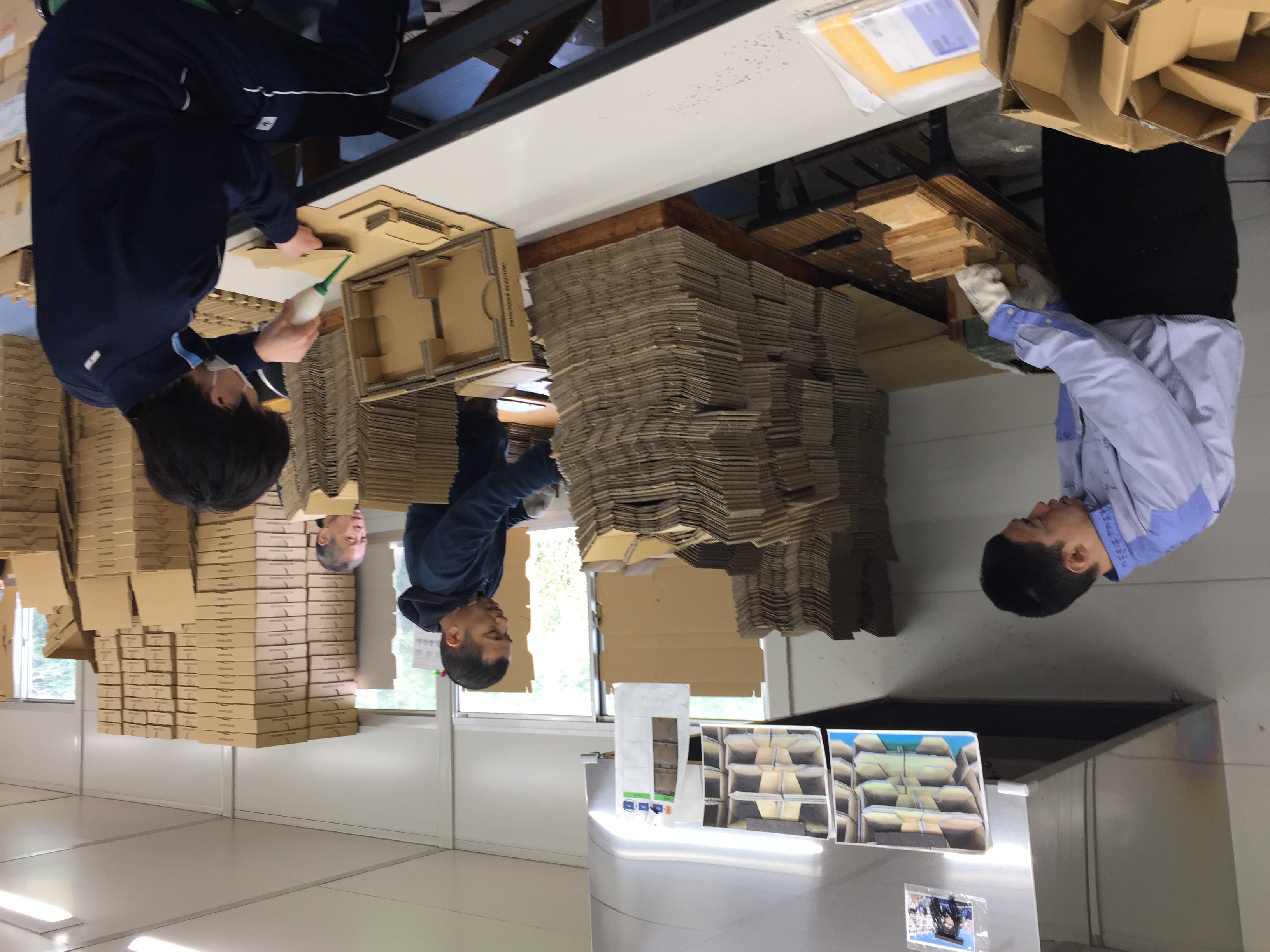 ダンボールを接着させ、組み立てる作業を行っています。新たな作業部材を導入し、作業の幅が広がっていくように取り組んでいます。
