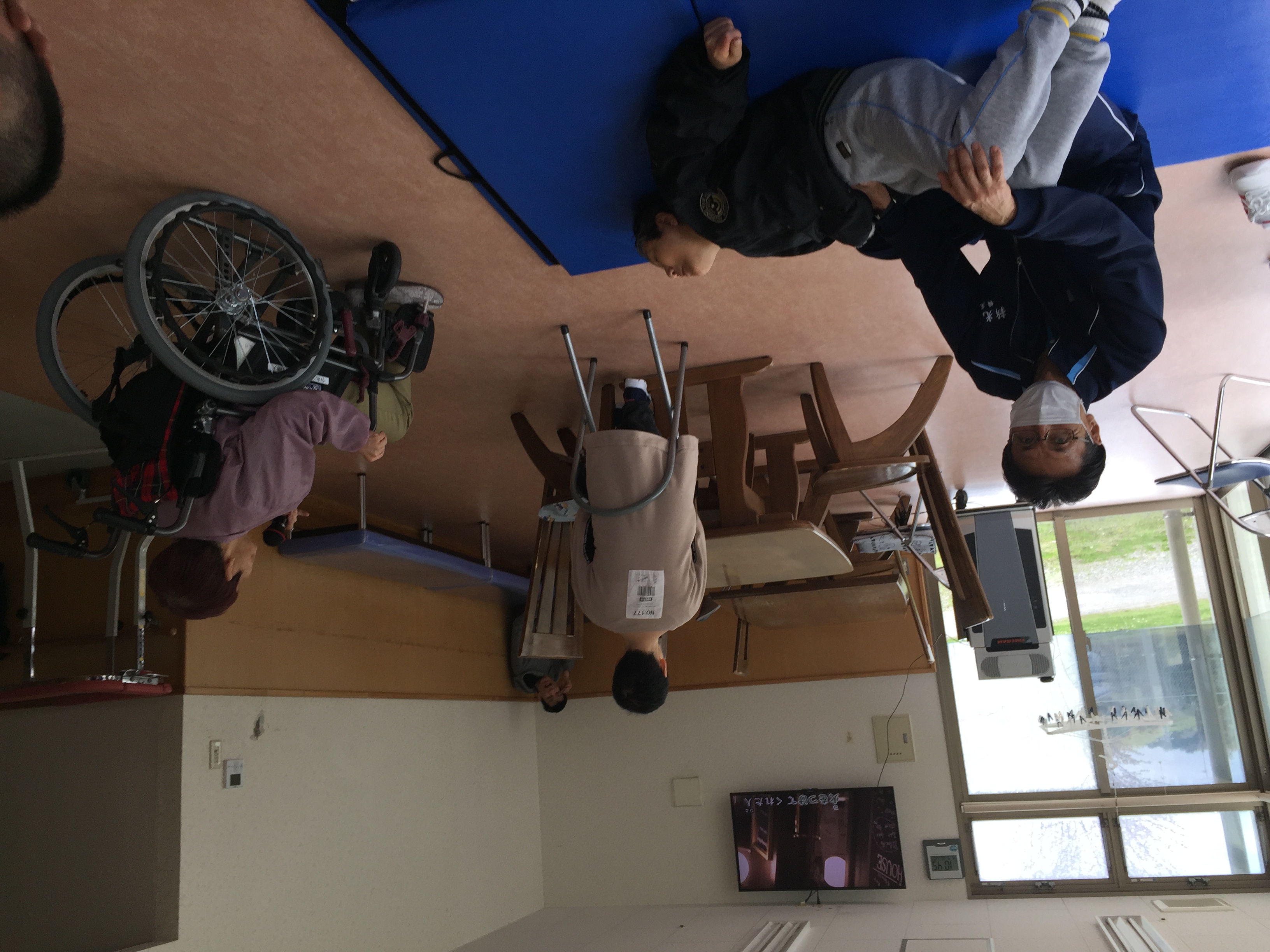 身体的な残存機能を維持する事と健康面への配慮を目的に取り組んでいます。カラオケを使用して、口腔体操やリズム体操に取り組んでいます。視覚障害者、車いす使用者も在籍しており、個別対応を行っています。