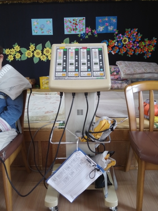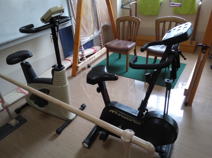 訓練室にはマッサージ機や運動器具を用意。個人個人に合わせ、無理なく、楽しく、安全をモットーにリハビリを行って頂いています。